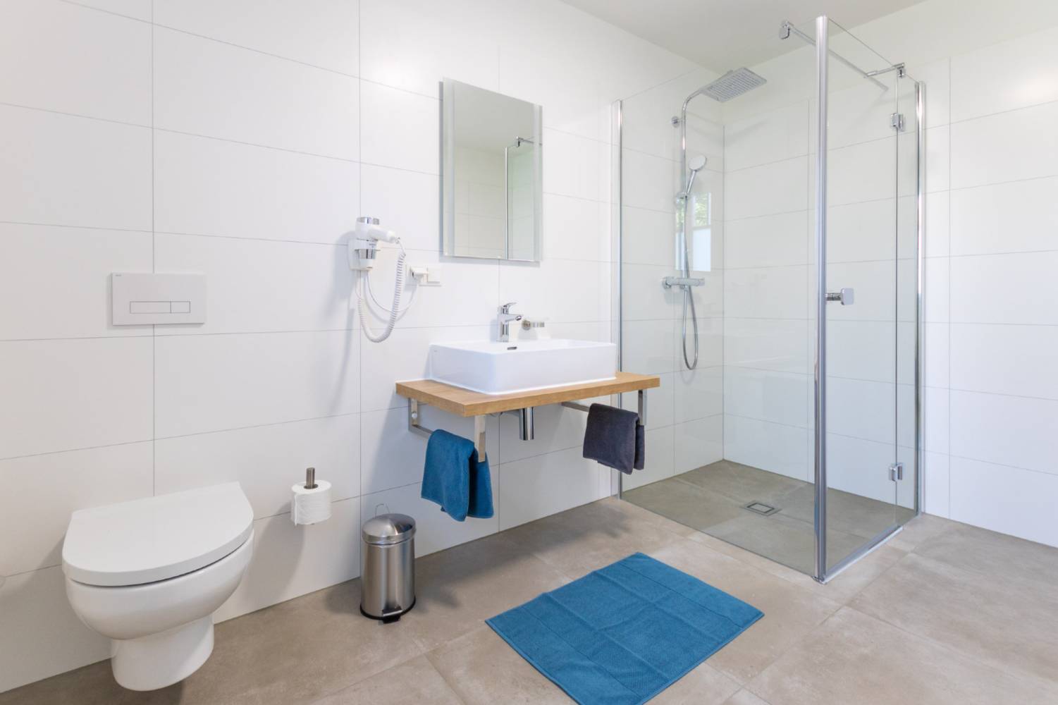 Ein separates Badezimmer mit Dusche und WC sorgt für zusätzlichen Komfort und Privatsphäre. Für deine Wäsche steht dir eine Gemeinschaftswaschmaschine bequem im Vorraum zur Verfügung.